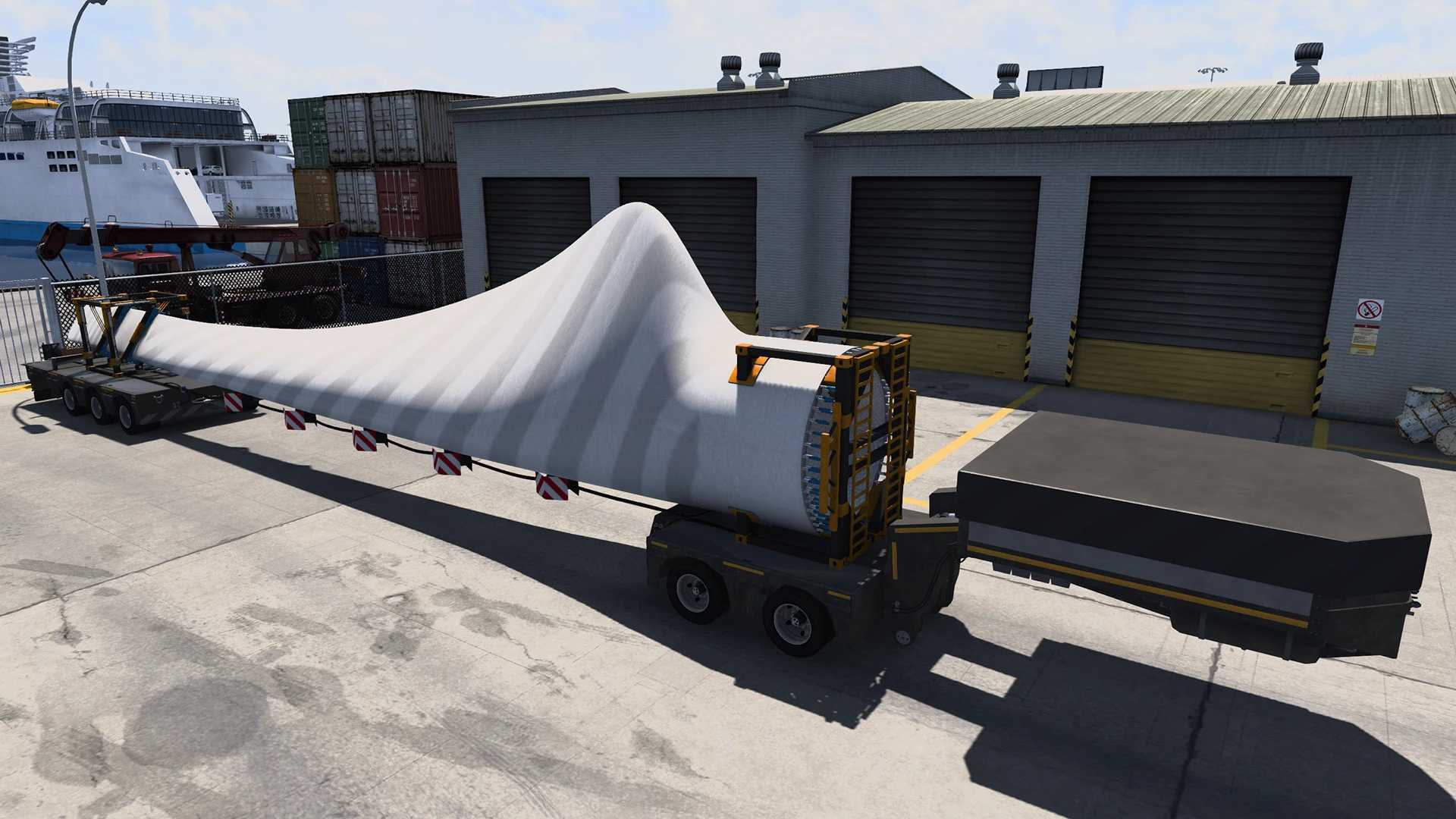 ŁADUNEK ŁOPAT DO WIATRAKA O DŁUGOŚCI 20,2 METRA DO NACZEPY NISKOWODNEJ ETS2 1.58.x ETS2