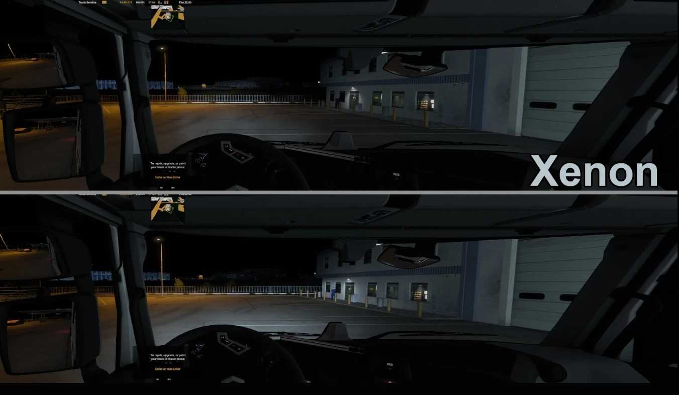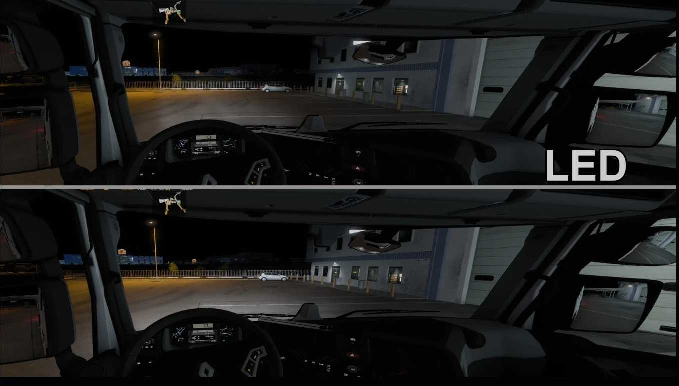 Mod umożliwia wybór reflektorów LED i ksenonowych do ciężarówek SCS. Ponieważ lampy halogenowe są zakazane w Europie, standardowi dealerzy stosują reflektory LED. Starsze modele umożliwiają wymianę reflektorów na halogenowe. W niektórych ciężarówkach firmowych reflektory są halogenowe.