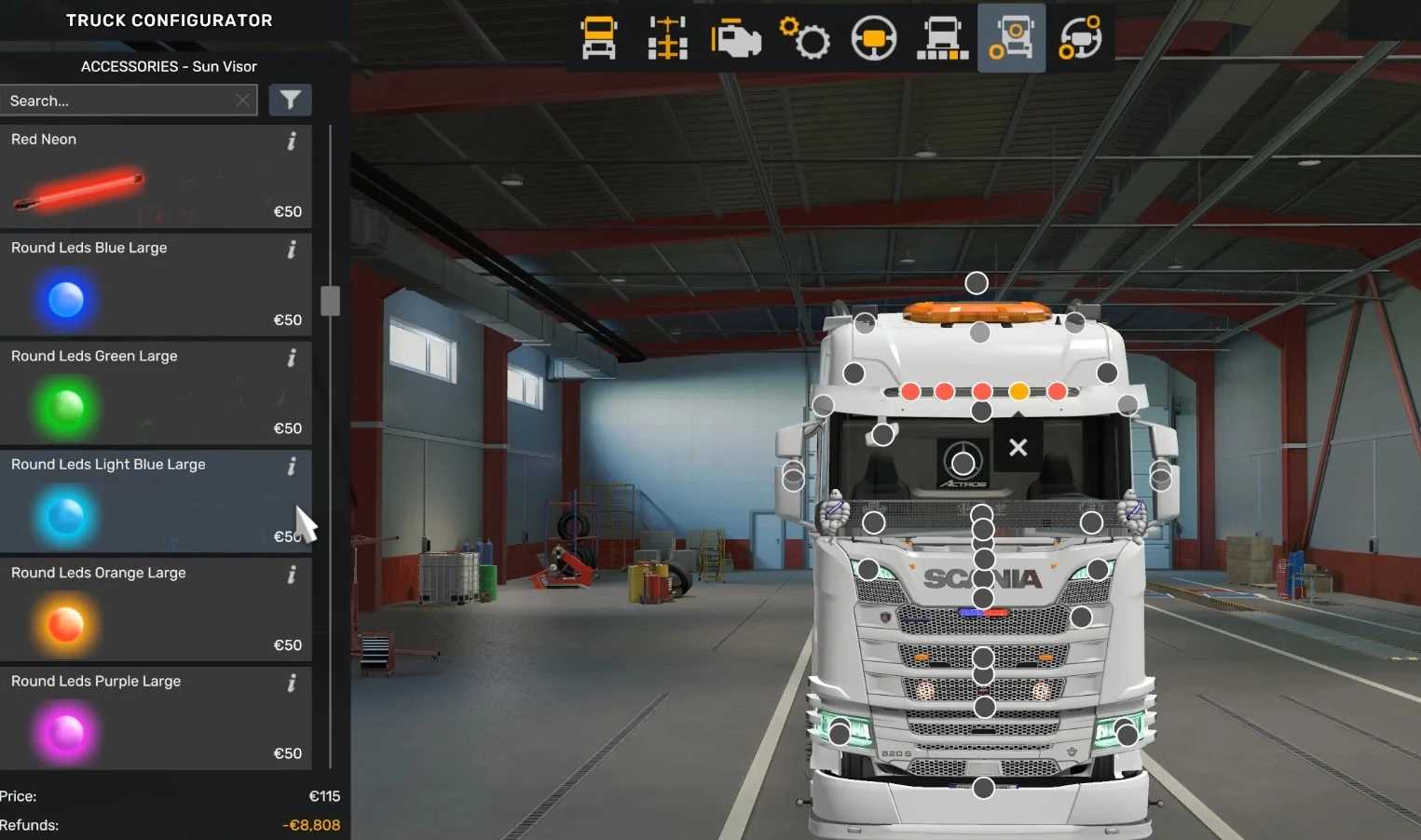 Strojenie LED dla wszystkich ciężarówek SCS v1.0 ETS2