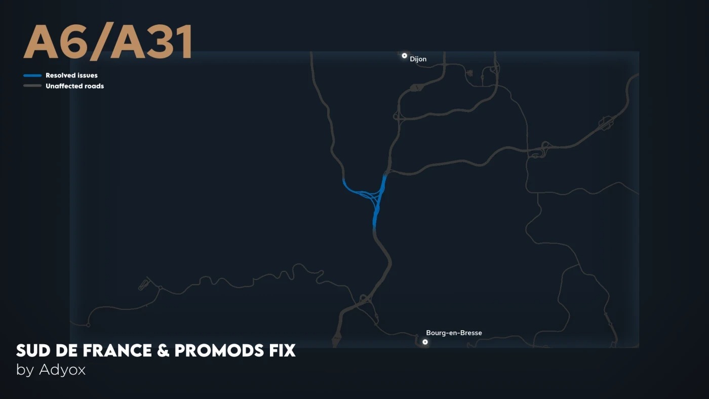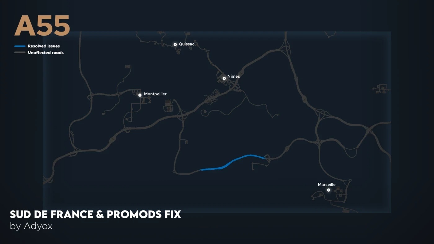 Od wersji Promods 2.80 mapa Charly's Sud de France nie jest już w pełni z nią kompatybilna. Ten mod pozwala połączyć te dwa mody i rozwiązać istniejące problemy. W przyszłości naszym celem będzie maksymalne rozszerzenie tej kompatybilności.